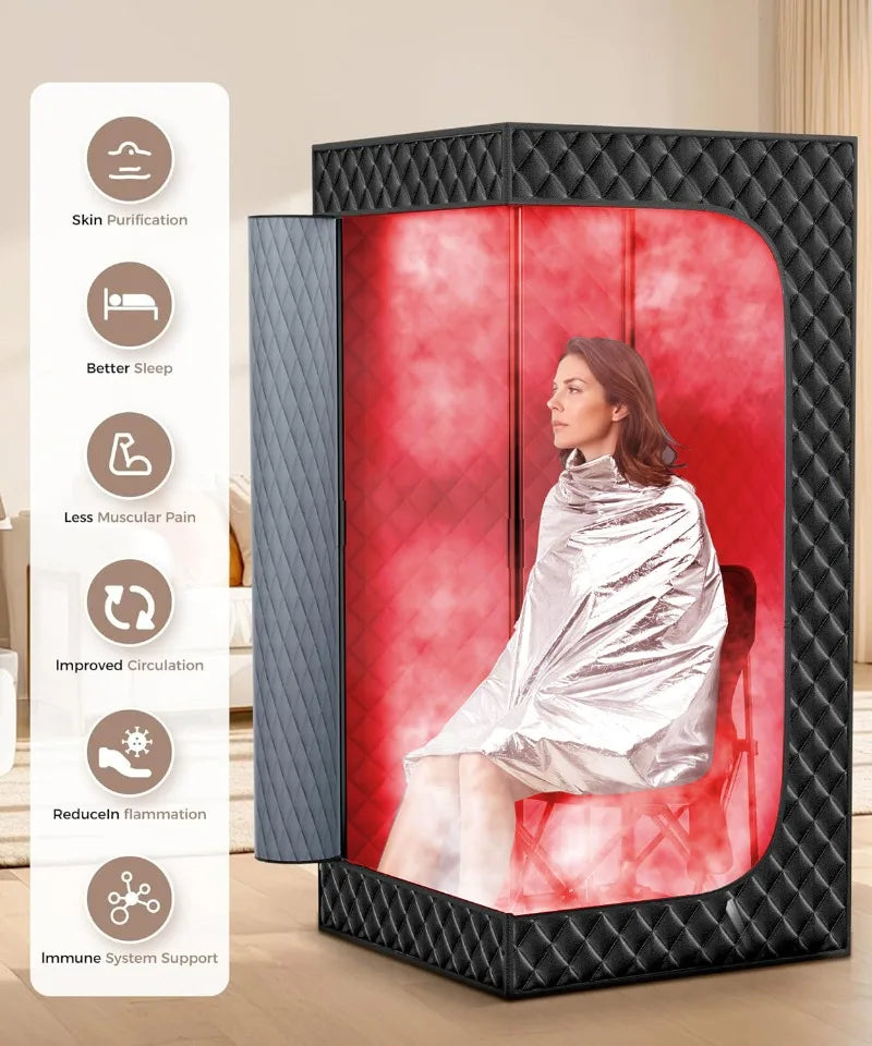 Opplev ekte velvære i ditt eget hjem med denne luksuriøse, bærbare infrarøde dampbadstuen. Designet for maksimal komfort, effektiv avslapning og moderne livsstil – perfekt for deg som ønsker en eksklusiv hjemmespa-opplevelse.